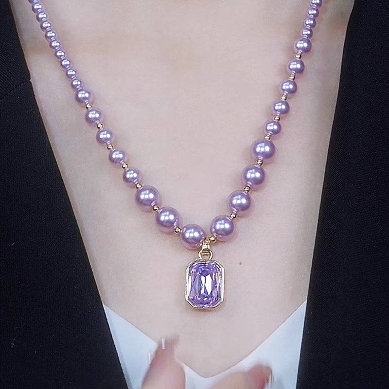 💜Elegant Purple Imitation Pearls Necklace with Pendant